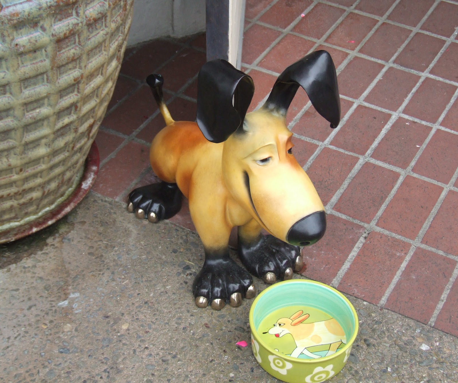 | An artistic water stop outside the Mountainsong Galleries in dog-friendly Carmel-By-The-Sea. I like writing dogs in my stories--could this inspire a scene? |